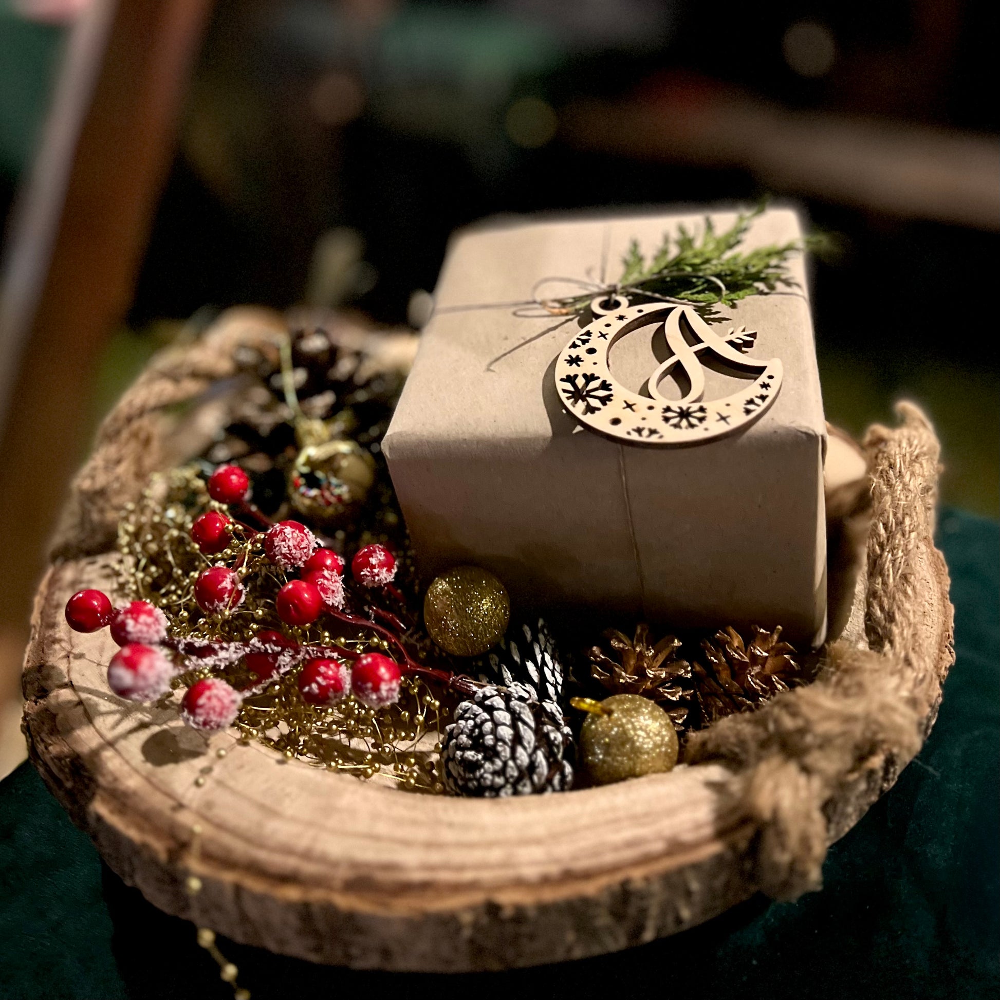 Elegante Anhänger aus Holz – ideal als personalisierte Christbaumanhänger, Geschenkanhänger oder Dekoration für den festlichen Tisch.